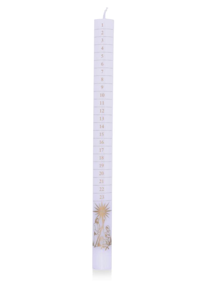 12" x 7/8" Gold on White Advent Numbered Candle Nativity Scene - Pack 6