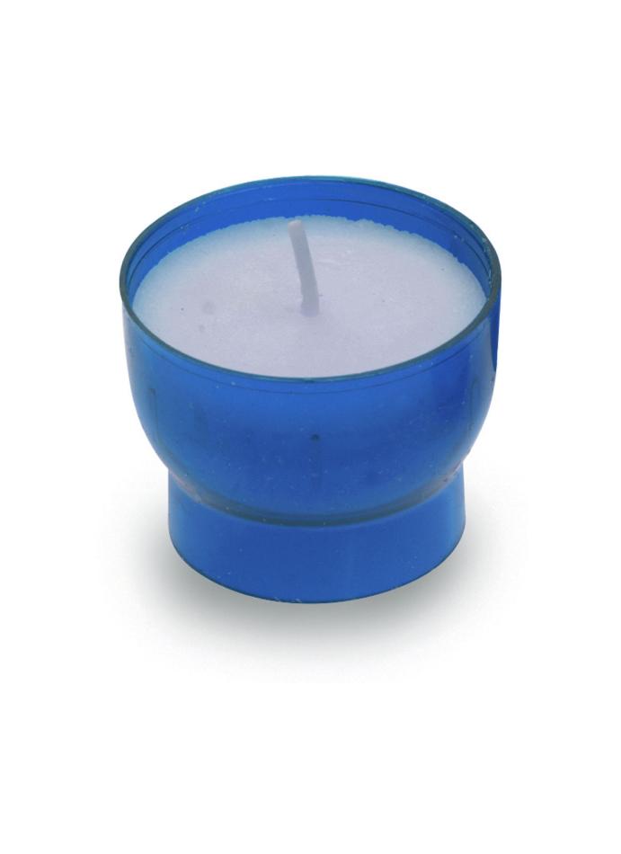 Blue plastic cased votive lights with a skirt, in a pack of 100