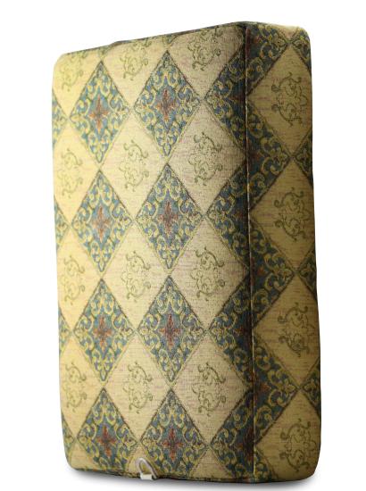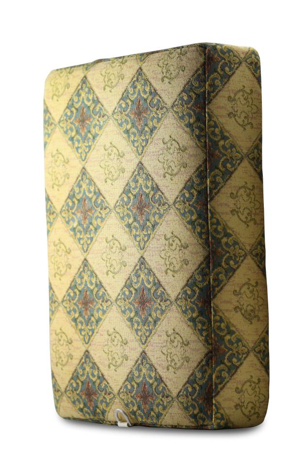 14" L x 10" W x 3" D with D ring  This complies with the furniture and furnishings fire safety regulations