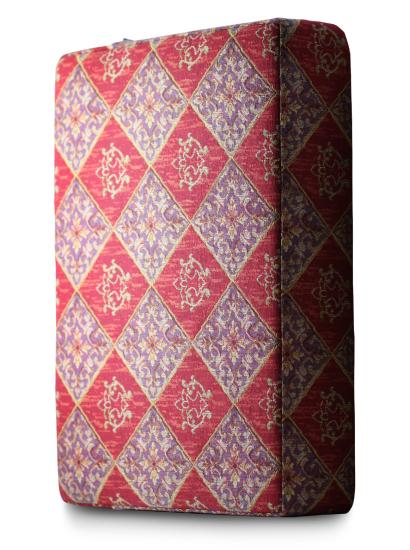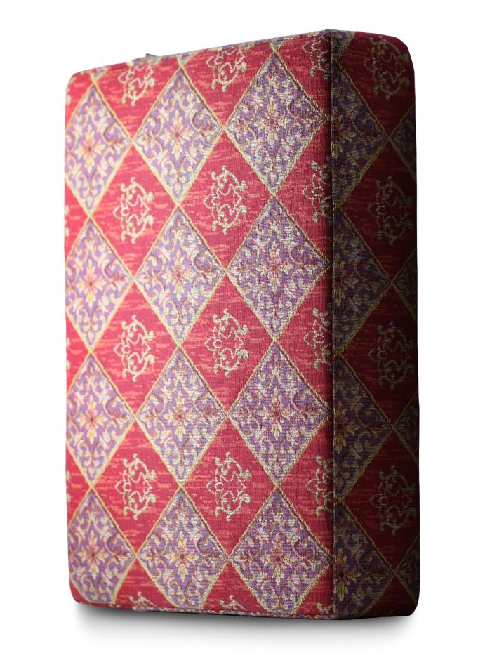 14" L x 10" W x 3" D with D ring  This complies with the furniture and furnishings fire safety regulations