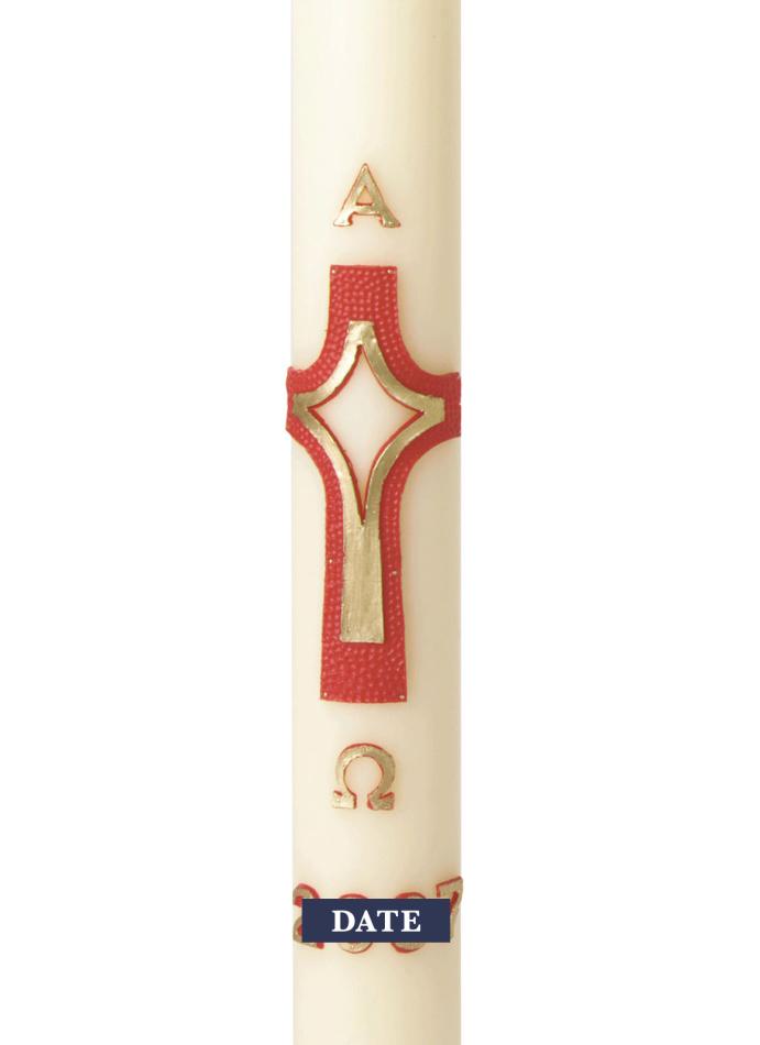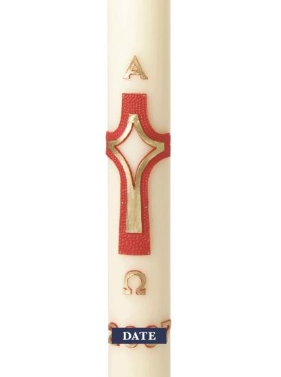 Diamond Cross Red & Gold Design (Suitable for 2 1/2" - 3" Candles) PLEASE NOTE DATES ARE EITHER SIDE OF CROSS NOT ON A DATE STRAP