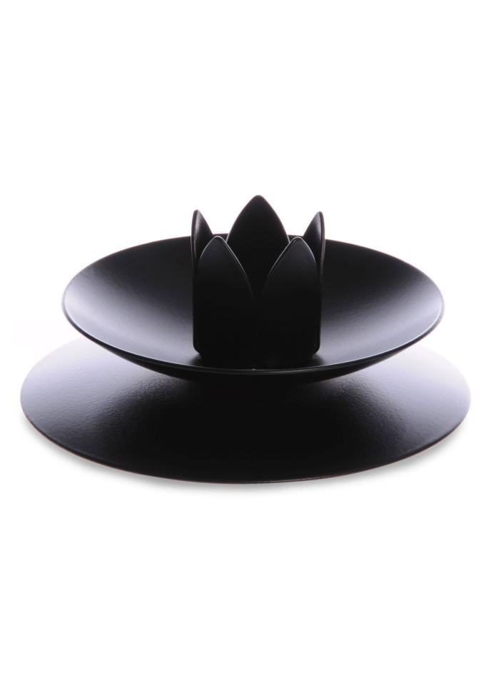Black holder suitable for 1" diameter candle, on saucer with base.