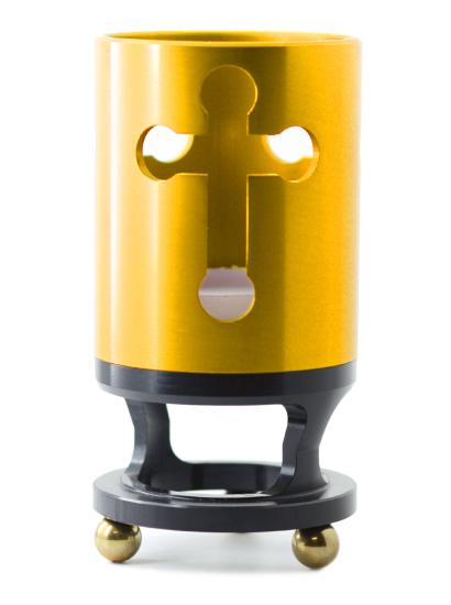 Icon Candle Holder in gold, suitable for use with votive candles.