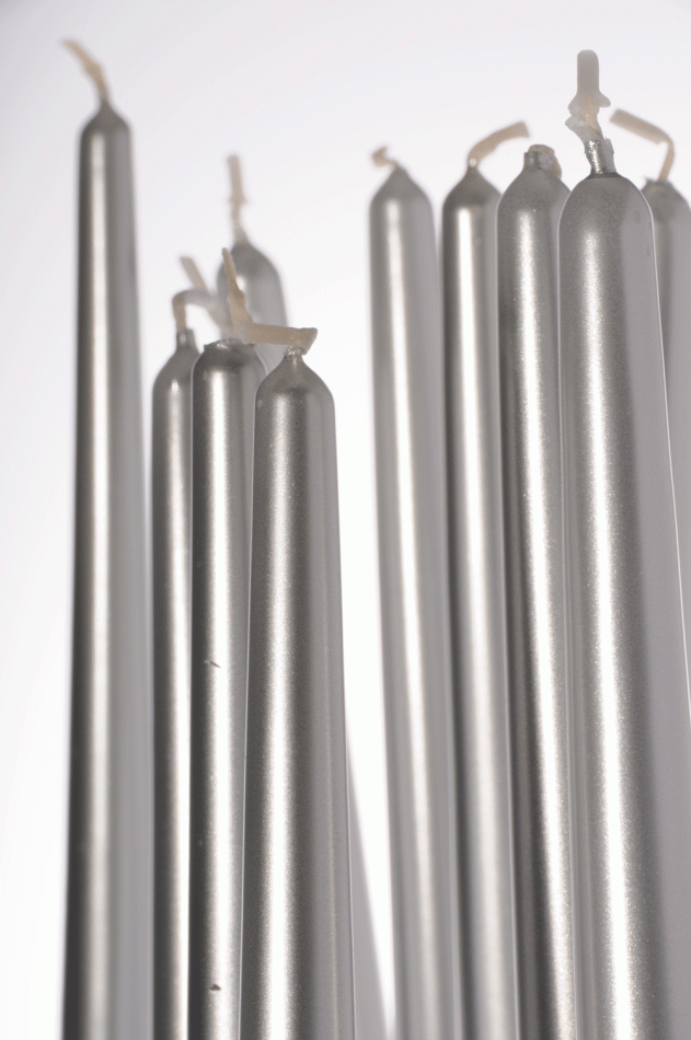 Tapered candles 10" x 7/8", overdipped in a range of colours. A classic, elegant shape for every dining table. Made in England.
