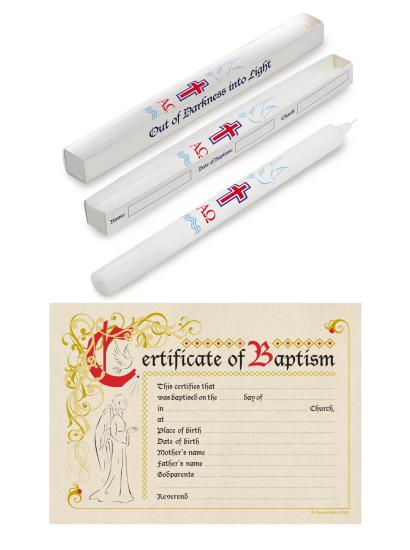 Purchase 1 Pack of 25 Baptismal Candles & 1 Pack of 25 Baptismal Certificates