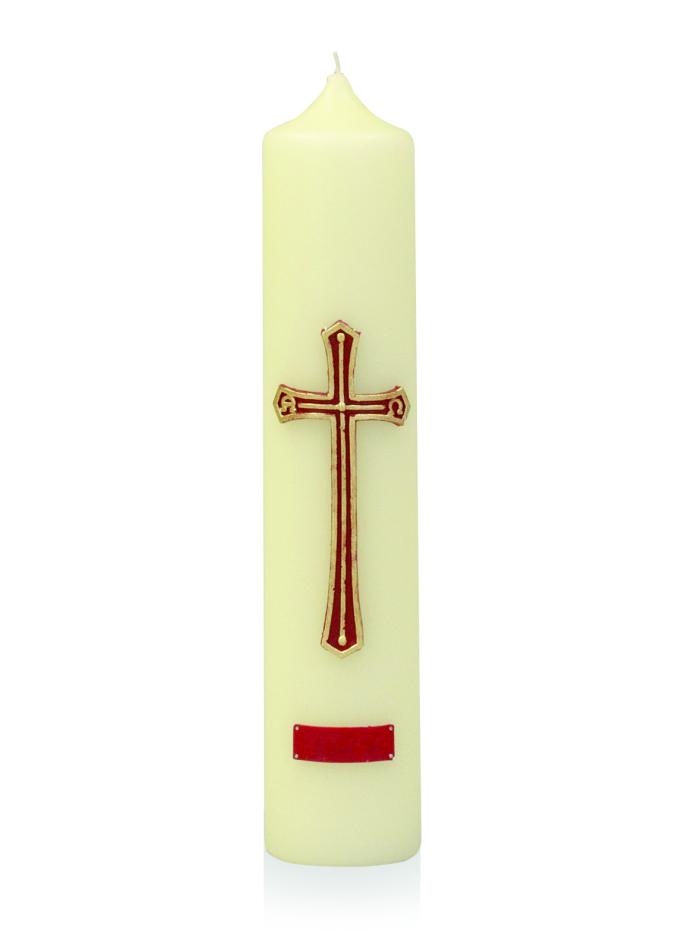 Red/Gold Cross with alpha & omega in cross - 1 (Suitable for 2 1/2"- 3" Candle)