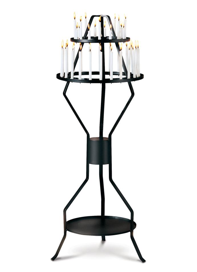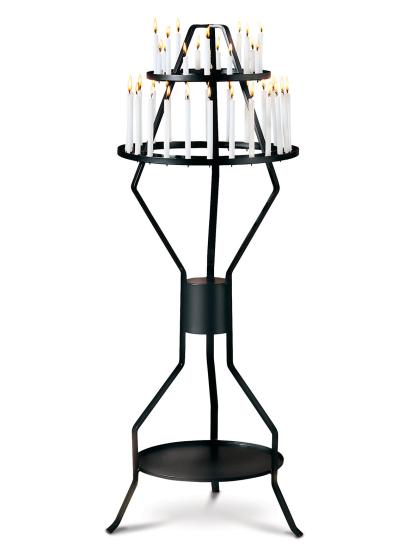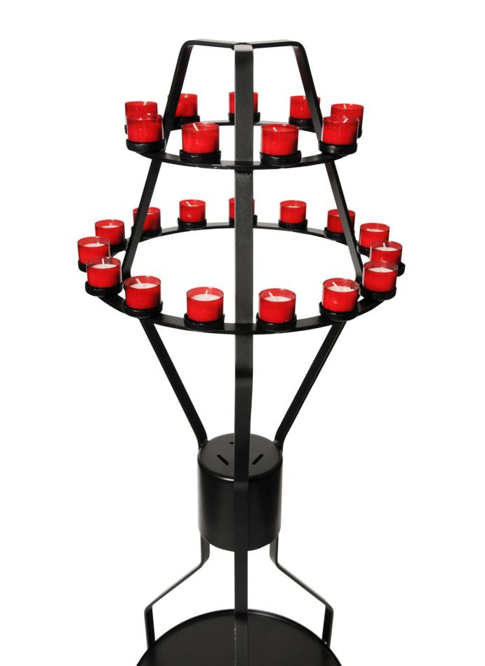 Black metal candle holder for 24 candles.