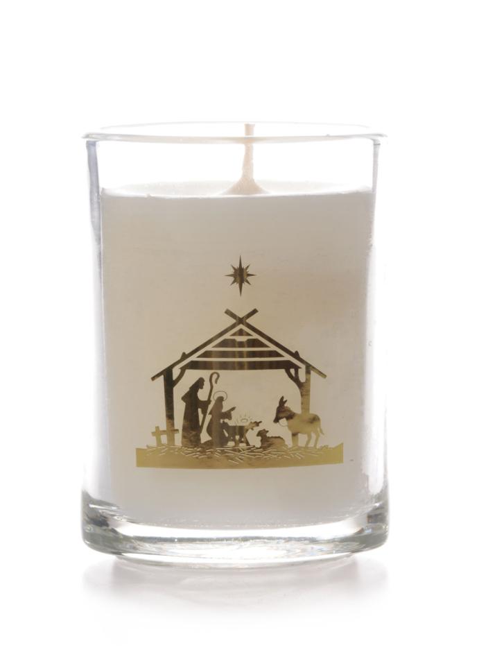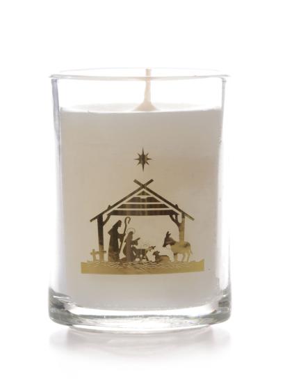 Round Glass Non Scented Candle Nativity Design - Pack 6